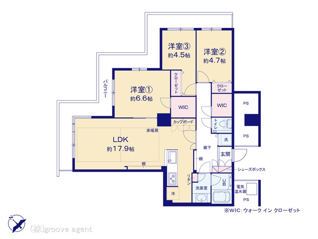 | 建物設備 | 床暖房, WIC, 角部屋, 浴室乾燥 |