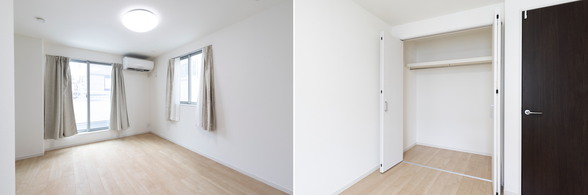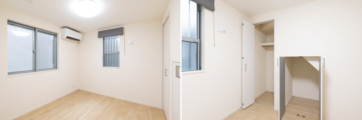 1階の個室は洗面台や浴室が近いので寝室向き。階段下の収納スペースが設けられている