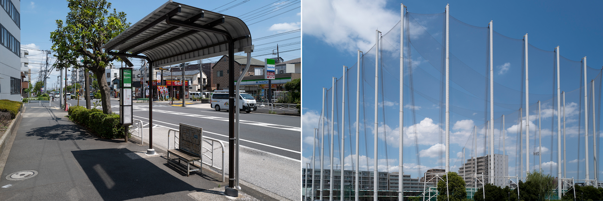最寄りのバス停・塩浜東。家から徒歩8分の場所にはゴルフ好きに嬉しいフジゴルフセンターがある