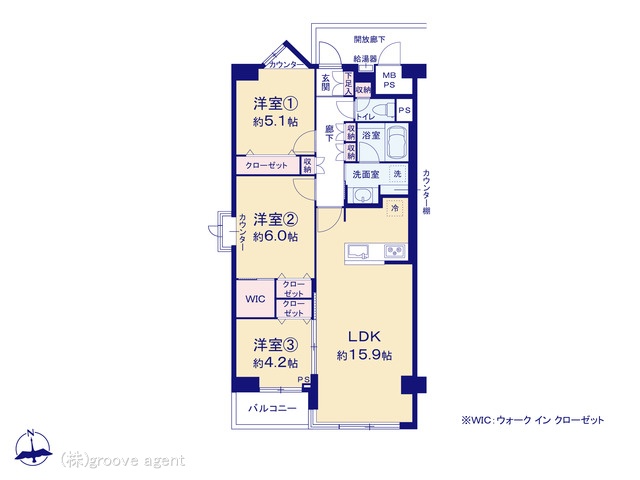 | 建物設備 | WIC, 角部屋, 浴室乾燥 |