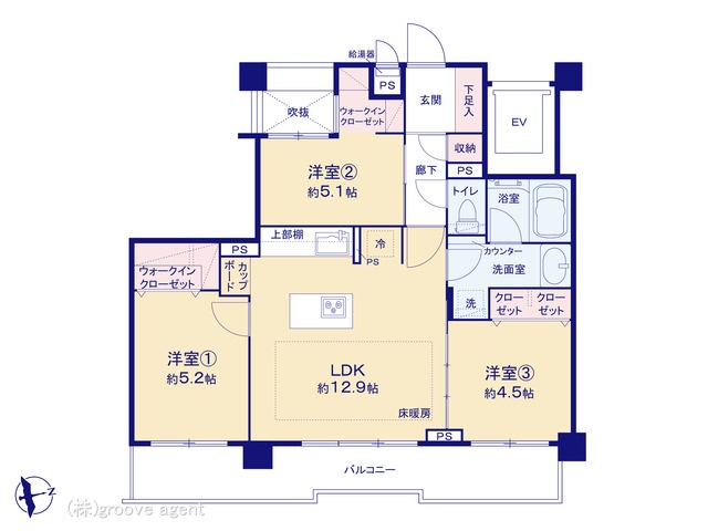 | 建物設備 | 床暖房, WIC, 浴室乾燥 |