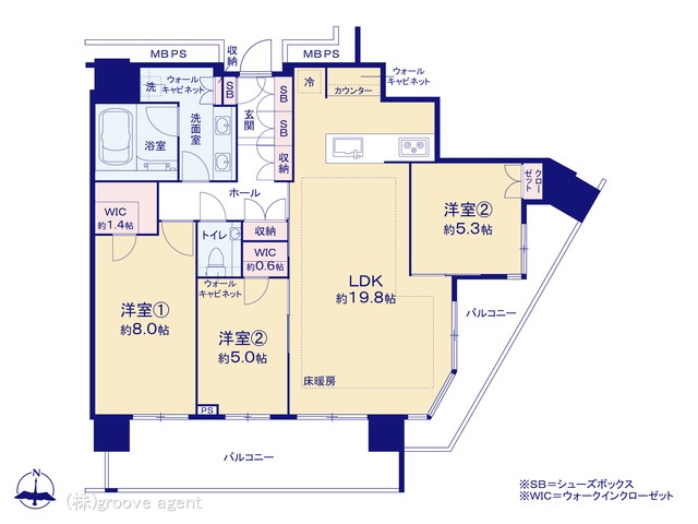 | 建物設備 | 床暖房, WIC, 浴室乾燥 |