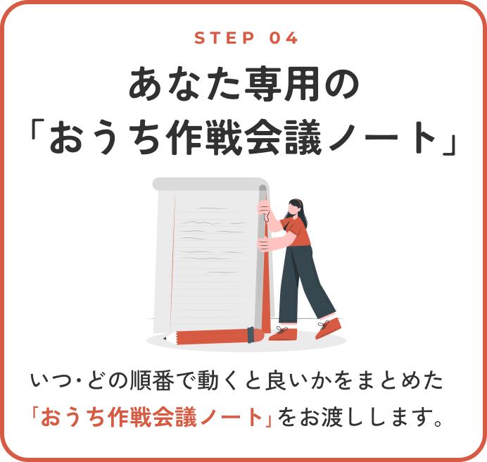 外せないポイントや物件条件などをまとめたおうち作戦会議ノートをお渡しします。