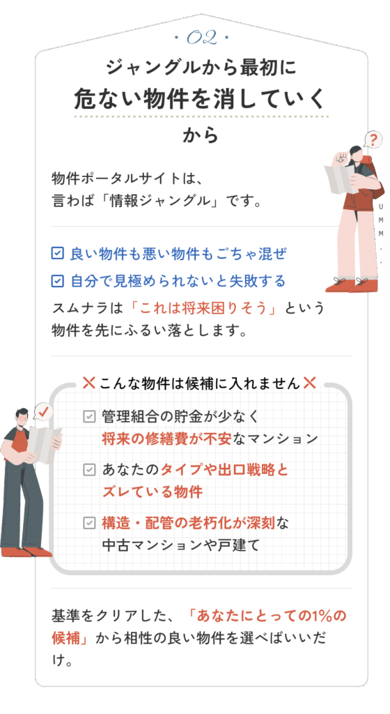 スムナラは「情報提供がメイン・その後はあなた次第」という方針でサービスを設計しています。