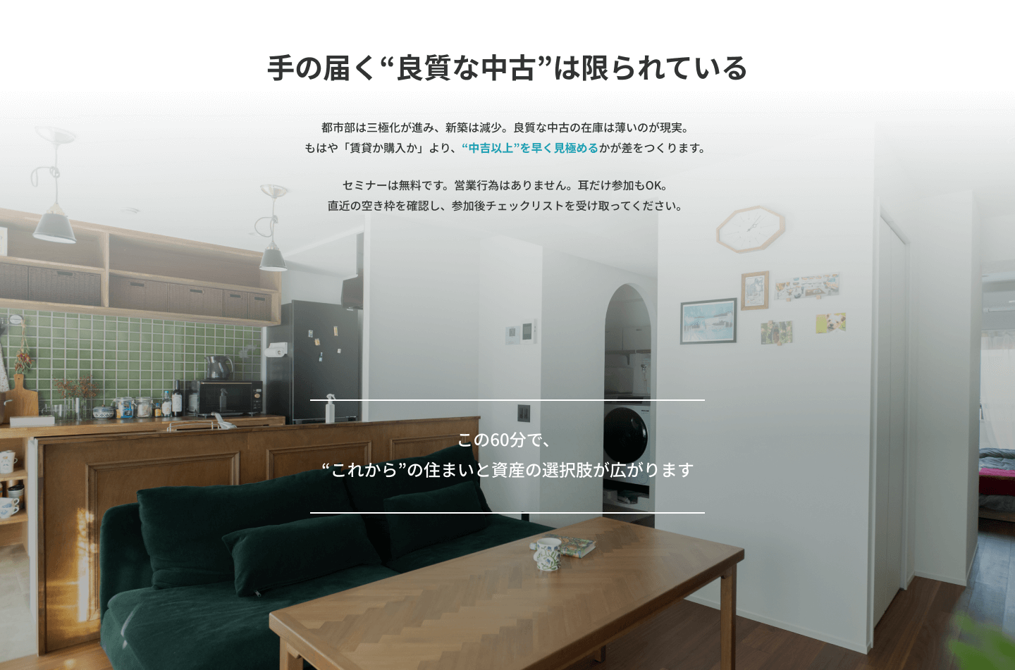 セミナーでは、資産性の判断方法 | 都市部における今後の世帯数推移や不動産相場 | 期待できない空き家活用の真実 | 30年後に売れるのか?について詳しくお伝えします。